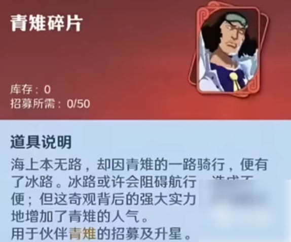 航海王壮志雄心青雉是即将要在4月登场的红色限定伙伴,他拥有冰冻之果的能力,能冰封大海冻结一切,虽然给人感觉看似漫不经心,但却有着独特的正义观,由于是还未上线的新角色,所以不少玩家对他并不了解,那么为了帮助大家了解,下面就来介绍一下青雉,感兴趣的不要错过。