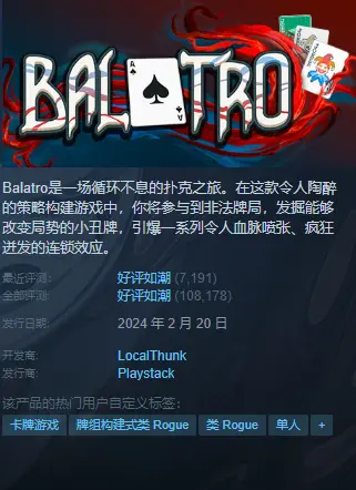 今年最热门的卡牌类游戏之一,将扑克玩法和roguelike结合,策略性极强,玩法新颖,容易上瘾。