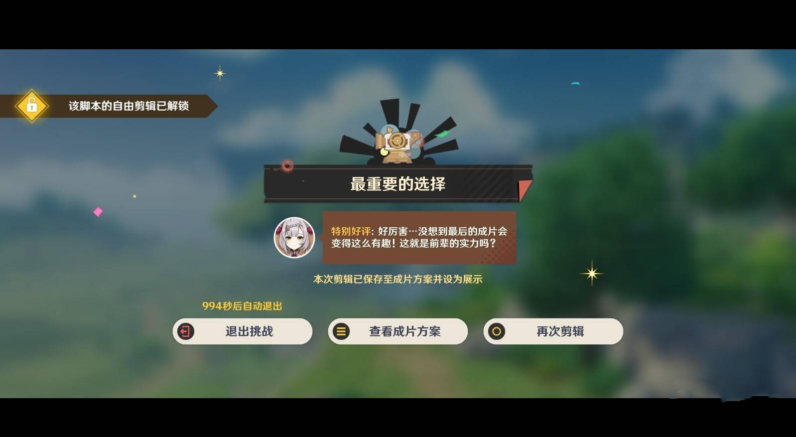 当旅行者成功获得特别好评后,即可不受脚本限制进行自由剪辑。