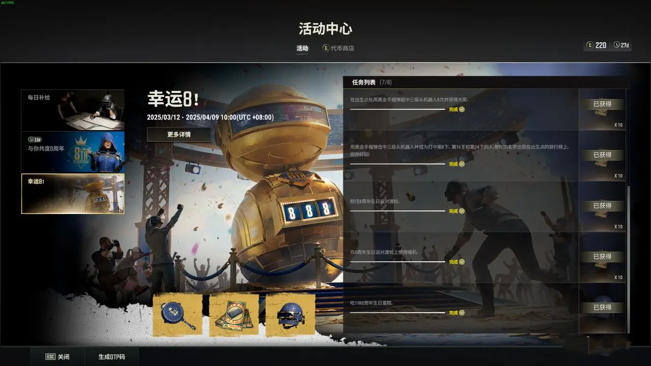 恭喜各位,成功完成8周年任务!这次的限时活动奖励不错,大家一定要抓紧时间参与!
