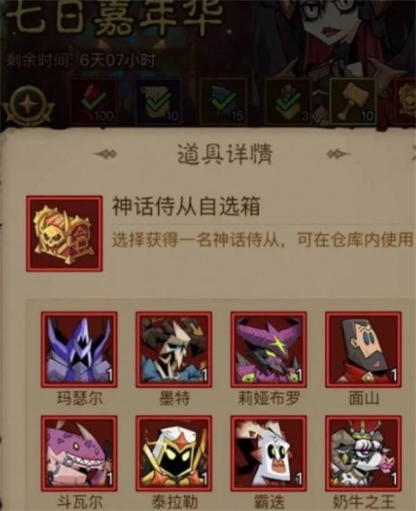 游戏开局的7天自选箱可以直接选择奶牛之王,如果没有其他更优选择,建议优先获取。