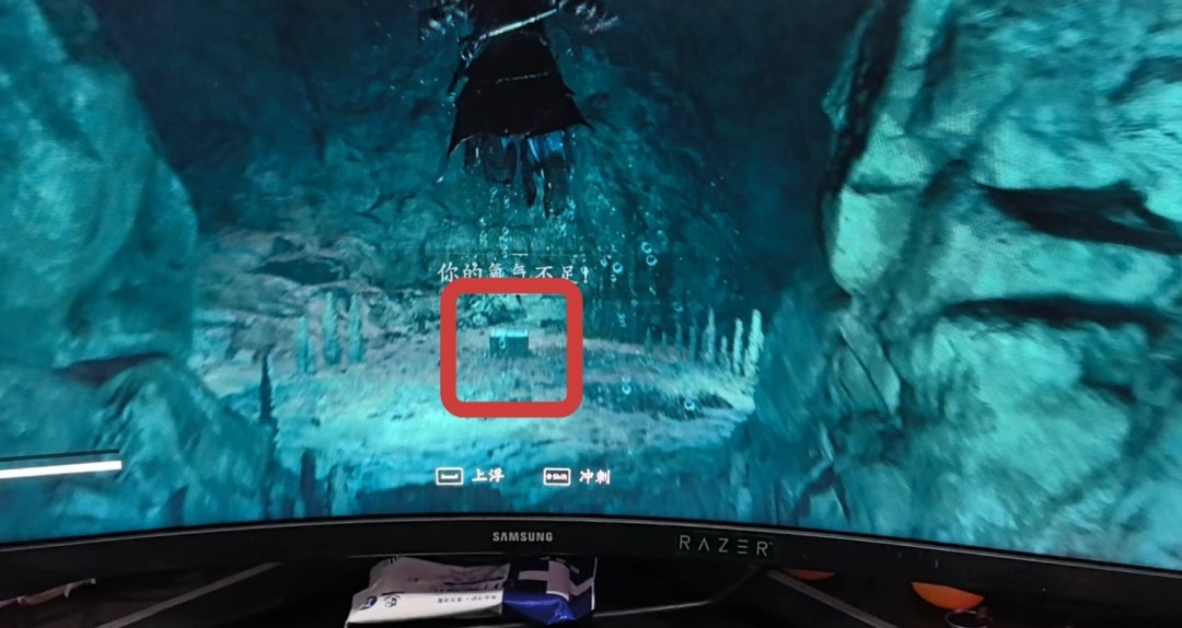 若氧气不足但已打开宝箱,仍可拼一波血量,成功游回水面。