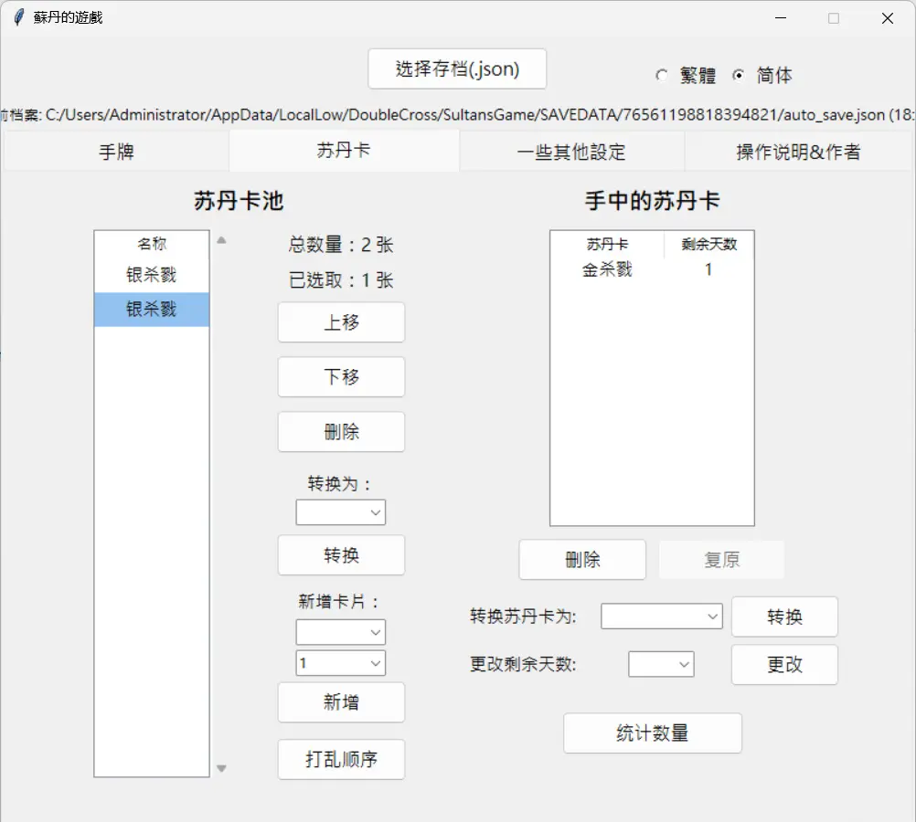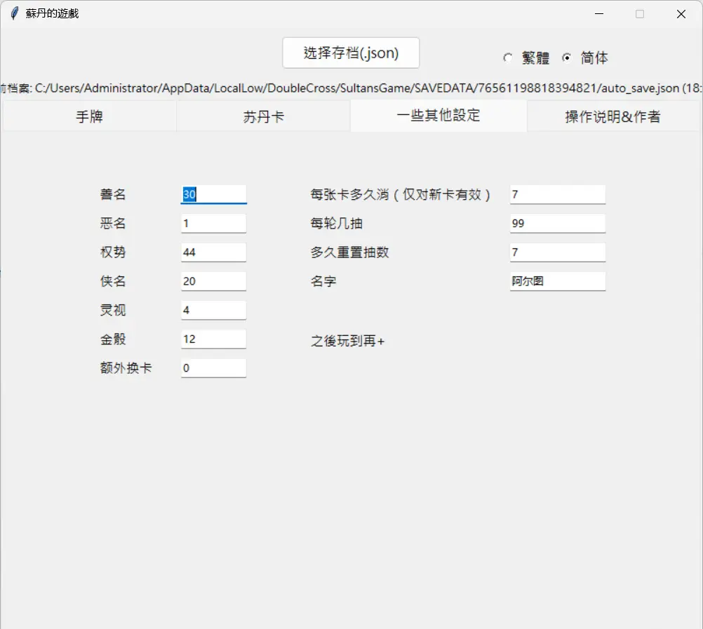 C:Users你的用户名AppDataLocalLowDoubleCrossSultansGameSAVE你的Steam账号IDauto_save.json