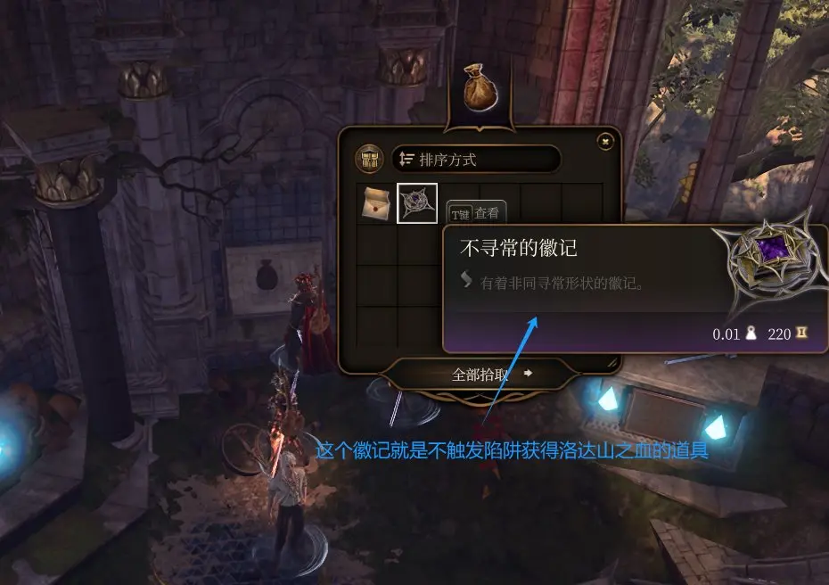 2、如果你没有徽记,可以直接拿洛山达之血,但这会触发战斗并需要击破能量源。
