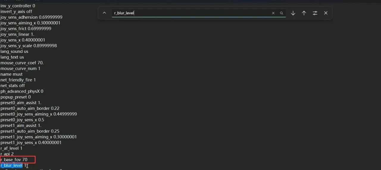 搜索 r_game_mblur_scale 和 r_blur_level;
