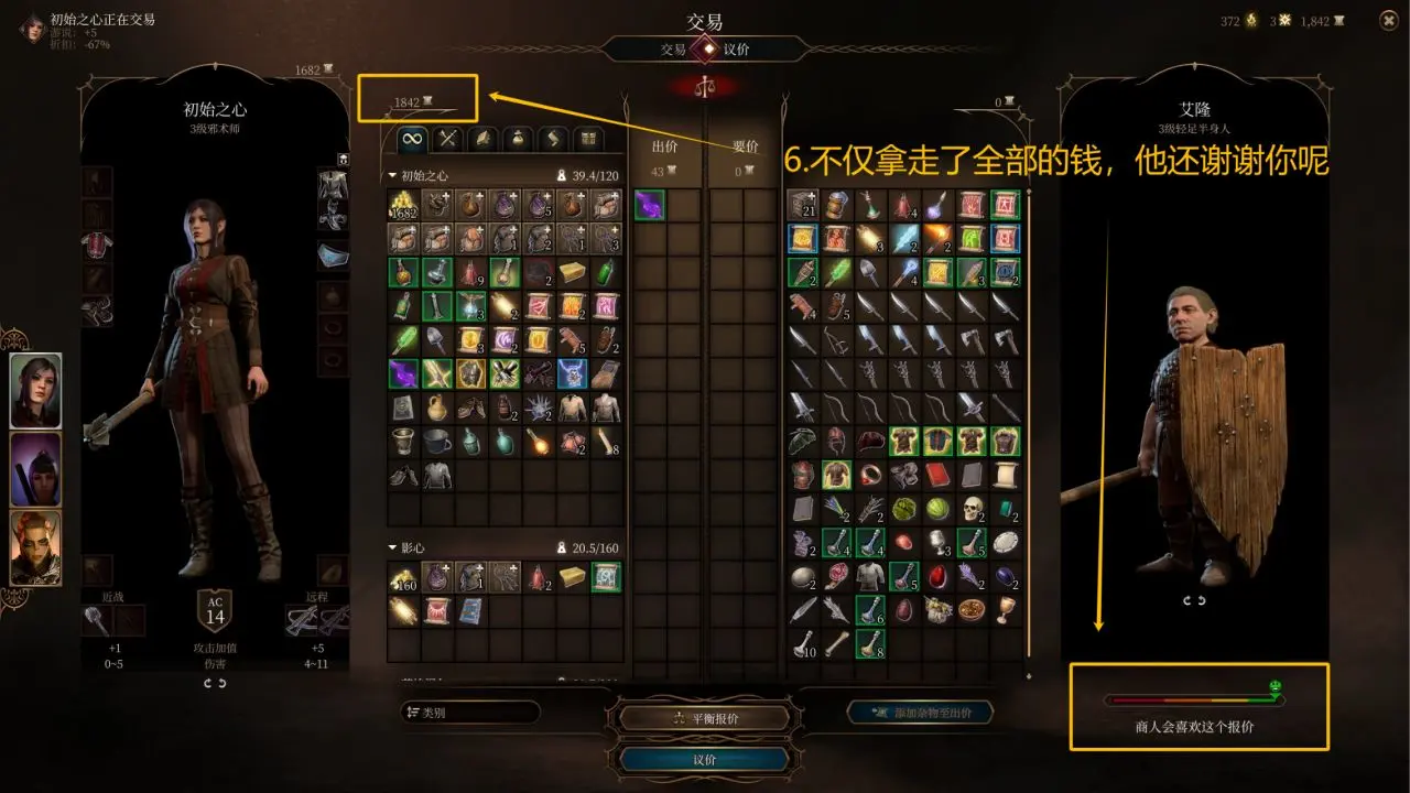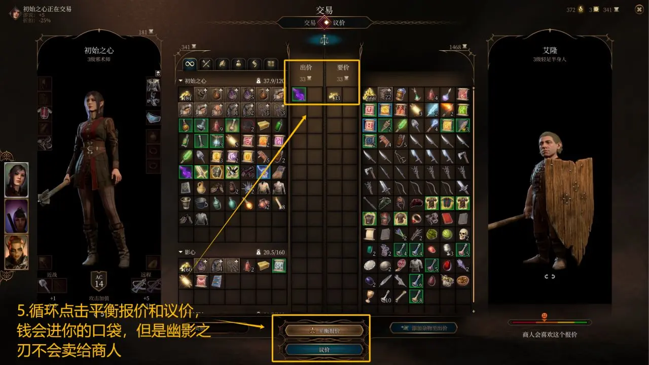 3、建议使用高游说角色进行交易/召唤幽影之刃,能提升物品售价与召唤效率;