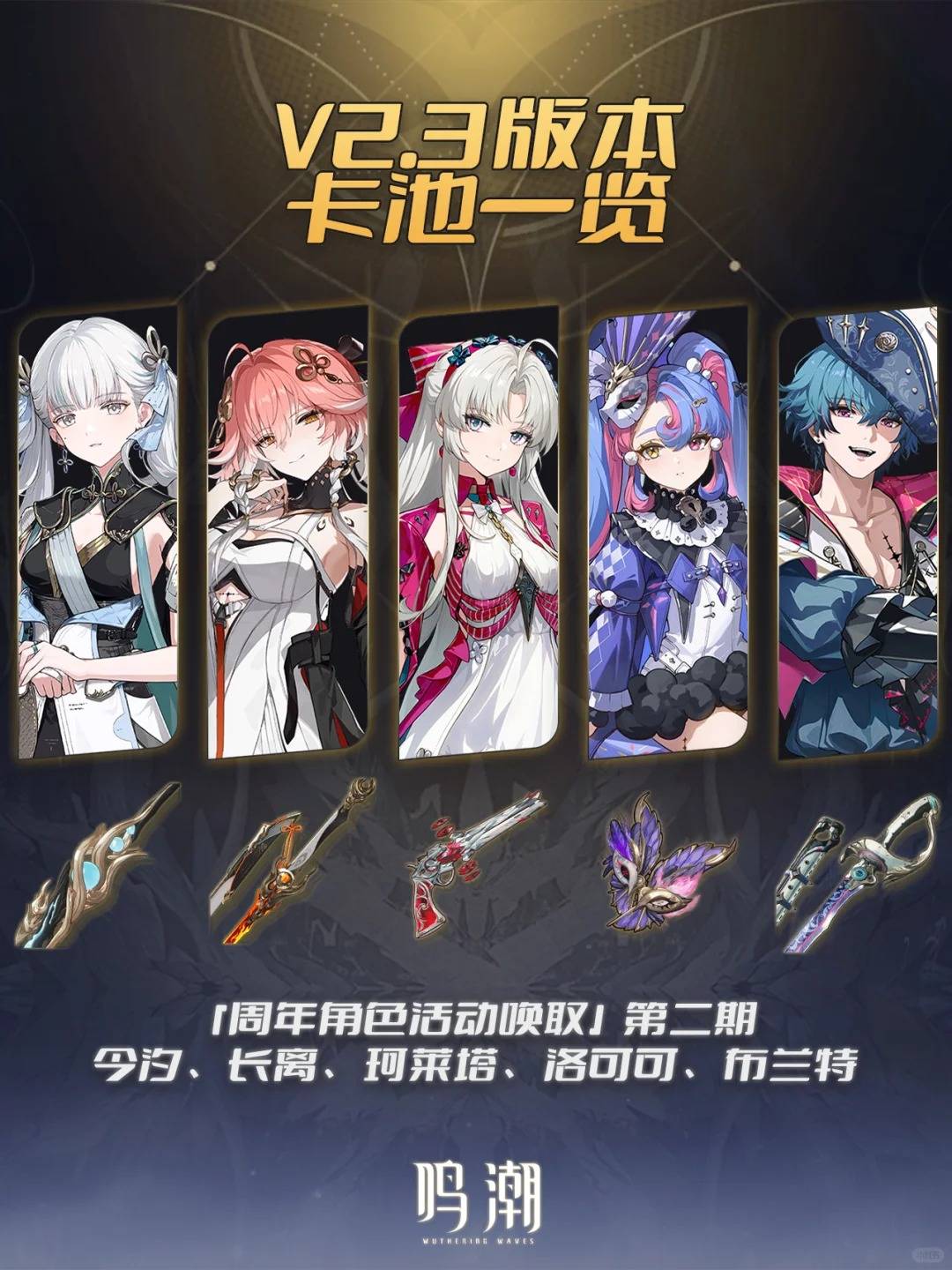 夏空、今汐、长离、珂莱塔、洛可可、布兰特