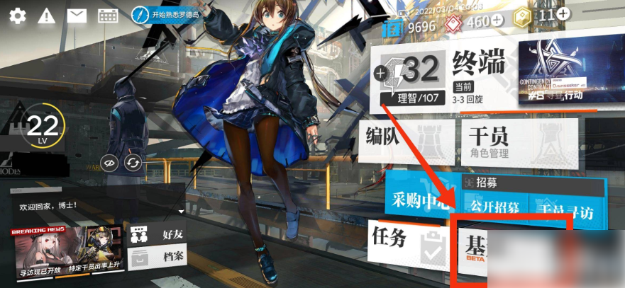 一、在游戏主页面找到【基建】点击并进入。