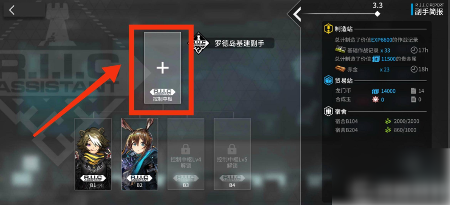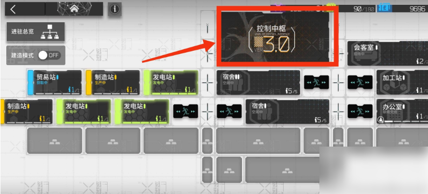 二、跳转进入基建页面之后点击页面中的【控制中枢】。