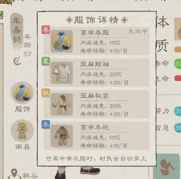 体质可以预防生病,穿衣服也可以预防生病,就像我上面说的,这游戏是有季节机制,对应的也有每个季节的衣服,以及下雨天的雨具