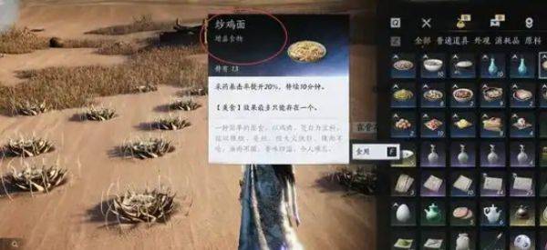 我们下去之后,在采集之前吃一份“炒鸡面”,它可以在10分钟内使采药暴击率上升20%,吃完面我们采集就好了