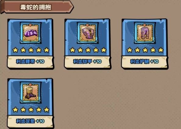如果自身战力强悍,可以凭借一己之力单刷副本,但若觉得单人挑战有难度,不妨带上好友一起组队打本,就目前而言装备藏品系统中已经出现了多达10种套装,每一种都有其独特的魅力和强大的属性加成,就拿毒蛇的拥抱套装来说,当玩家将其升满并集齐所有部件后,便能获得极为可观的属性加成,攻击强度会增加30点,这让玩家在战斗中的输出能力得到提升。