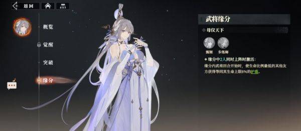 既然提到了甄姬,另一个心愿武将可以考虑设置为步练师,这样可以激活母仪天下缘分,使队伍在回合开始时获得基于血量上限的护盾,增强生存能力,需要注意的是,心愿武将每天可以设置一次,且切换心愿武将不会重置抽取次数,设置心愿武将后,获取指定神将的概率将提升至全部神将概率的70%,但并非百分百必中,如果本次未抽到心愿武将,下一次抽取则必定为心愿武将之一。