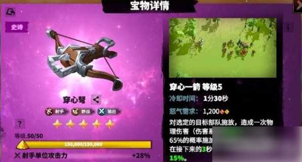 对于没有获取到传说宝物的玩家来说,穿心弩是个不错的过渡选择,有单体伤害的同时还能增加破防效果,可以提高普通攻击的伤害。