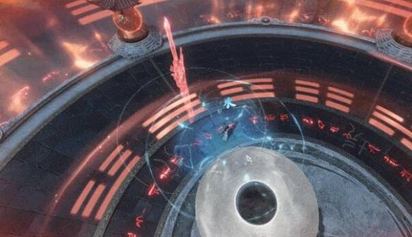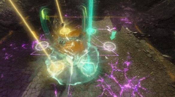 2、boss鼎开始蓄力,玩家需要根据指示填补法阵剩下的长枪打断蓄力。