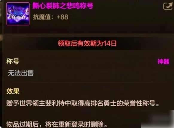 1、获取方法:世界boss斐利特,伤害排名达到前3%。
