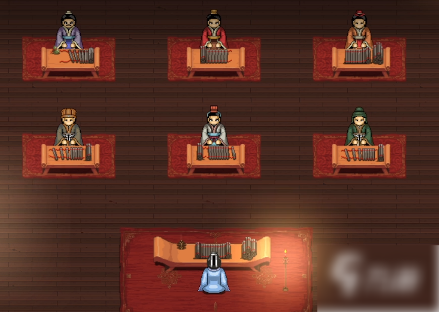 在一开始会有着一段文字介绍,从这款文字里面可以得到当下是卢植在教导刘备和公孙瓒的时期。接下来在剧情对话之后咱们便可以操作刘备进行移动。在附近有着一些NPC,我们可以找他们对话来获取一些基本的情报和一些物资。在闲逛完毕之后咱们便可以回屋进行休息。在休息完毕后便可以触发剧情,在剧情后便开启模拟战。这款游戏的战斗以战棋类型作战方法为主。