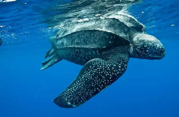 背部没有坚硬的甲壳,而是覆盖着深蓝或黑色的“革质皮肤”;