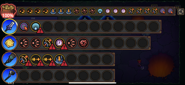 这样在去到第三关【朝圣者走廊】的时候,地图地面上会刷一个橙色的大坑,里边还有很多小手会招摇着说“大爷来玩啊~”,这个就是【食腐舌簇】,我们站在旁边放下一个法术当x资,它就会给你一些你想要的。