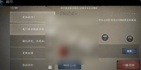 1、鬼门关结束后,拍卖行里竞拍,全服抢一把1万黄金。