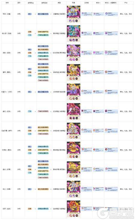 异兽:孙悟空(暴击)圣麒麟(护盾)王母(击晕)嫦娥(治疗)羲和(法暴)