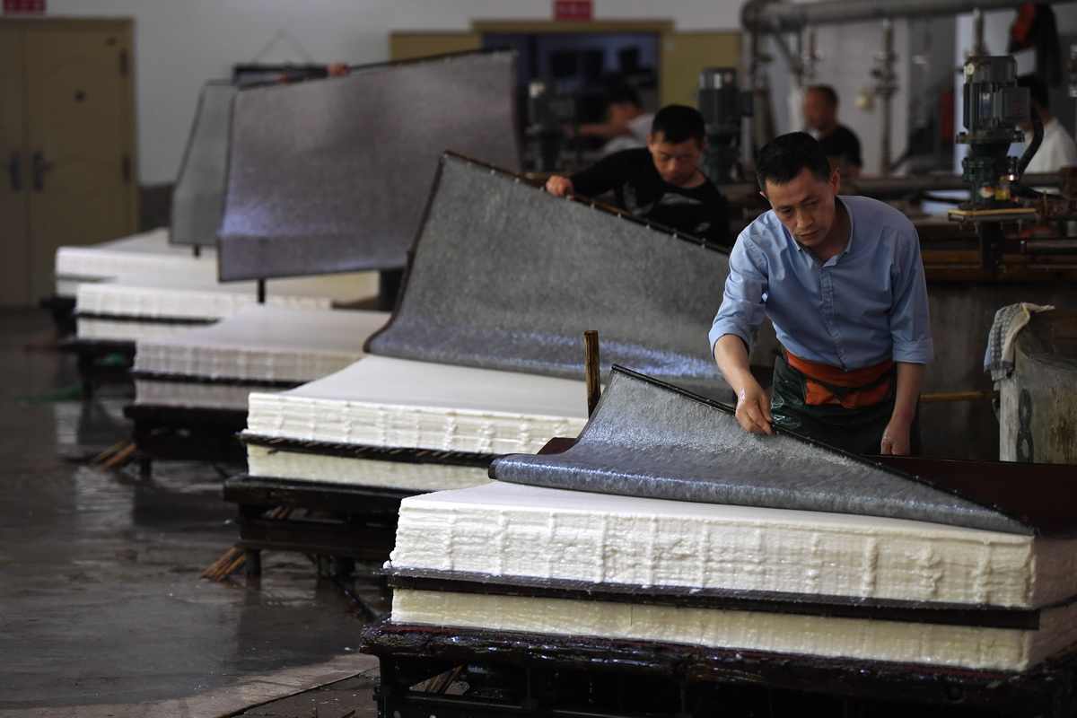 印制多用于印刷、版画、纸币等工艺,不属于造纸流程。而捞纸是宣纸制作中最关键、最具代表性的一道手工工序,也是判断宣纸是否为传统工艺制作的重要标志,因此正确答案是捞纸。