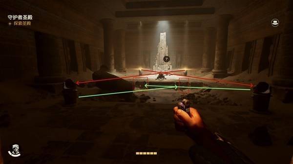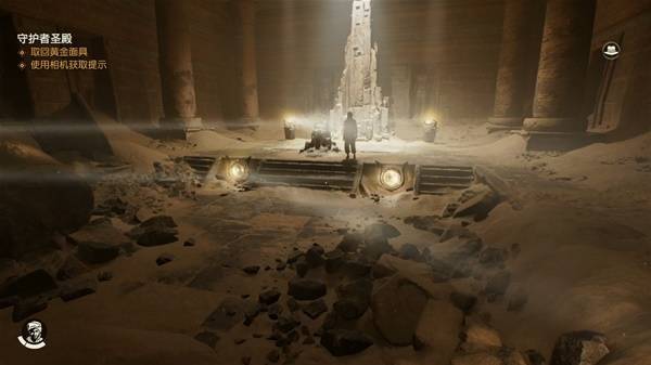 2、在这里,你会发现有一个放置黄金面具的区域,但要获得它并不简单,需要解决一个光线解谜。