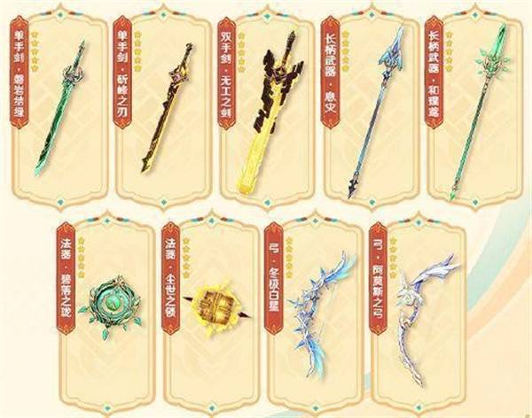 5.3版本还将提供一系列强力的五星武器,供玩家选择: