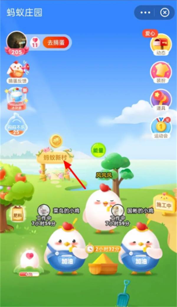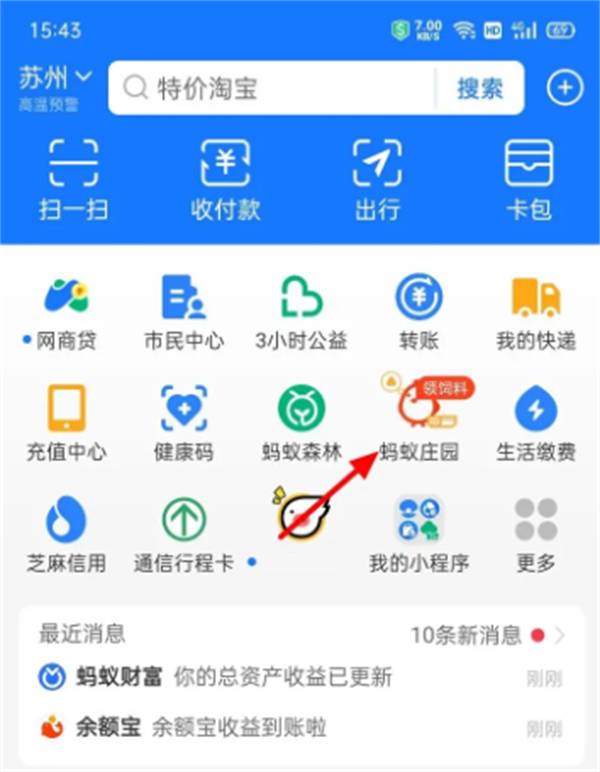 1、打开支付宝,进入【蚂蚁新村】页面;