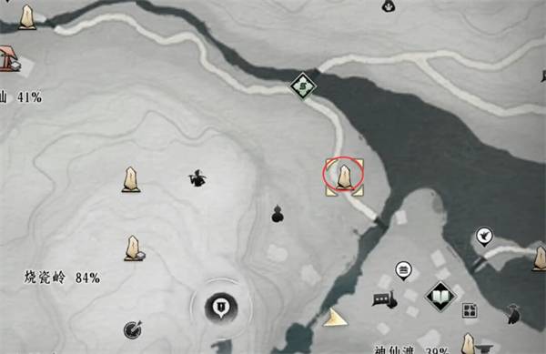 2、传送至【烧瓷岭】,向前走找到一棵大树,在树下与樵夫对话,然后前往附近房顶,获取【藏宝图4】。