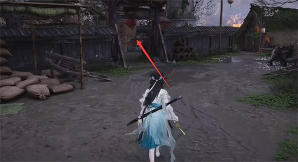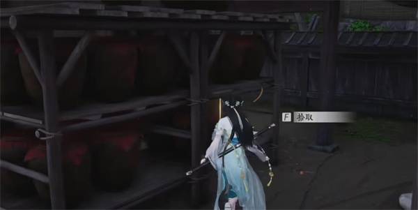 2、进入院子后,向前走,在对面的架子上找到【藏宝图1】。