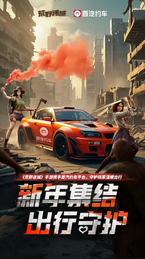 本次“新年集结,出行守护”的跨界活动,将分别在《荒野迷城》游戏内及首汽约车APP同步上线:
