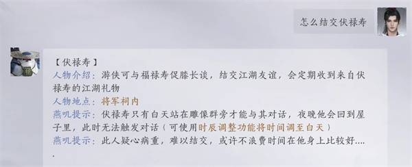 燕云十六声手游结交伏禄寿的三种方法-燕云手游怎么攻略伏禄寿