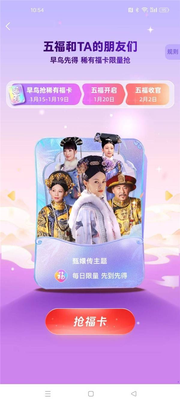 用户可以通过多种途径(如市场链接、二维码、搜索等)进入五福早鸟活动页面,参与抢福卡活动。