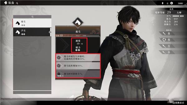 除了战斗装备,玩家还可以选择不同属性的马匹来适应战场上的不同需求。