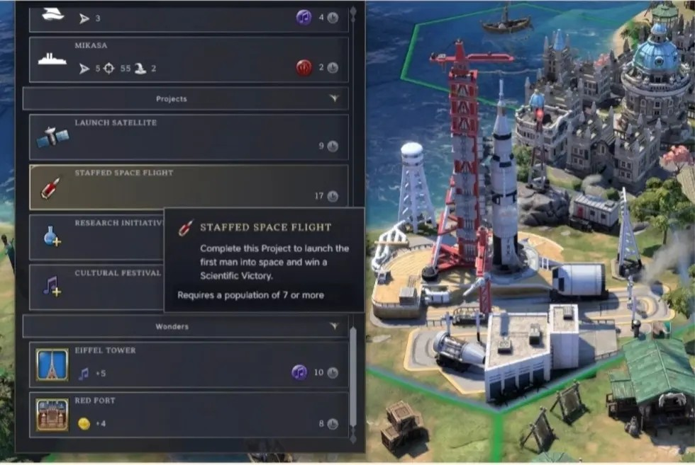 2、当你的文明率先成功将人类送入太空,你将成为科技胜利的赢家。