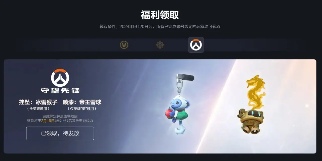 3、发放时间:2月19日开服后2小时内到账(可在战网虚拟钱包查看)