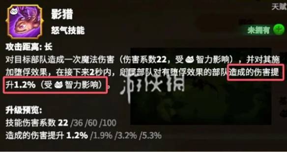 2、影猎·进阶”、“影猎·强化”则可以进一步强化此技能,增加堕俘效果的持续时间和增伤幅度。