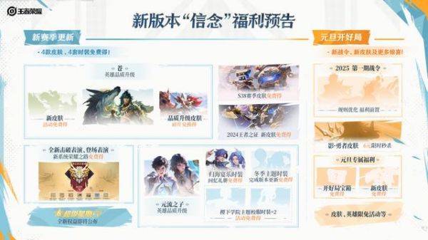 腾讯《王者荣耀》手游官方昨日发布 2025 年度版本和S38 赛季预告,新版本命名为“信念”,将升级英雄“苍”和“元流之子”,并优化对局体验等。