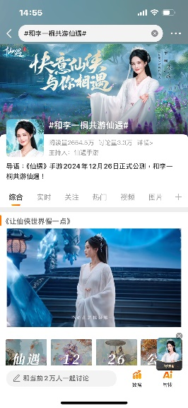事实证明这份快乐感染了不少人,公测当日,微博出现#和李一桐共游仙遇#、#李一桐向往的修仙生活#多个热搜,阅读量破千万,不仅线上刷屏,代言人品牌TVC还空降广州、深圳、佛山等地核心商圈大屏,引发大量玩家粉丝打卡传播,热闹非凡。