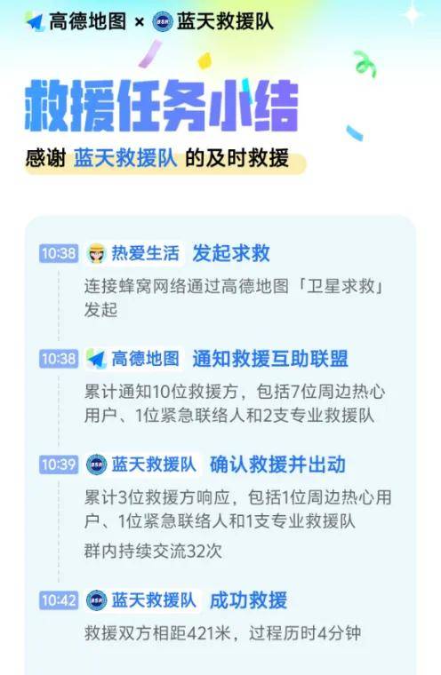 当求救者与救援者共同确认救援任务圆满完成时,系统将自动展示本次救援任务的总结。