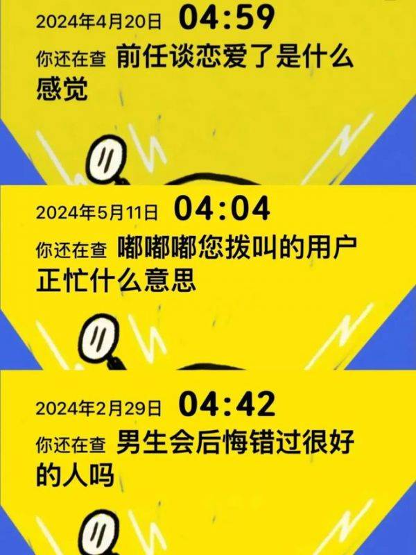 类似的例子有:“前任谈恋爱了是什么感觉?”“嘟嘟嘟您拨叫的用户正忙什么意思?”“男生会后悔错过很好的人吗?”