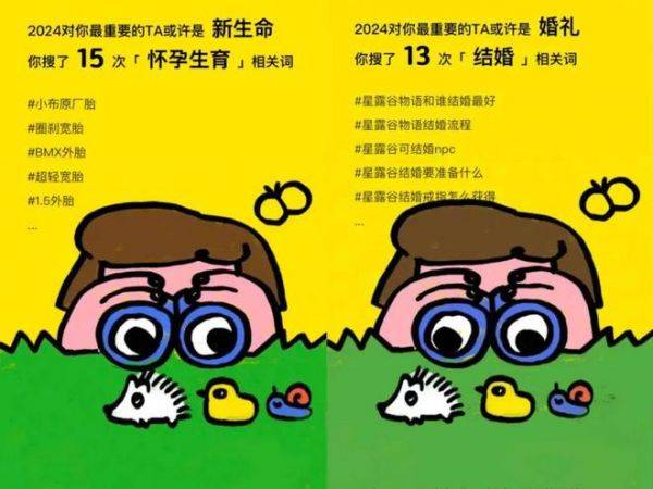 比如,有网友搜索“星露谷结婚”相关内容,被认为一年中“婚礼”对她*重要;有网友搜索“轮胎”相关词汇,年度相关词竟成了“怀孕生育”。