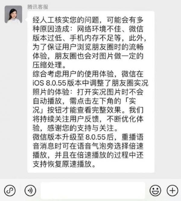 对此,腾讯客服表示,微信版本升级至 8.0.55 后,重播语音消息时可在语音气泡旁选择倍速播放,并且在倍速播放的过程中还支持恢复原速播放。