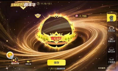 11月22日0点登录游戏,免费领取嘉年华光环永久版本,并根据领取顺序,获得全服唯一的纪念编号。