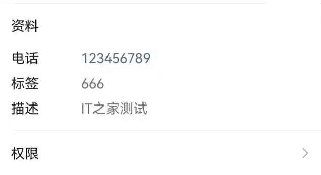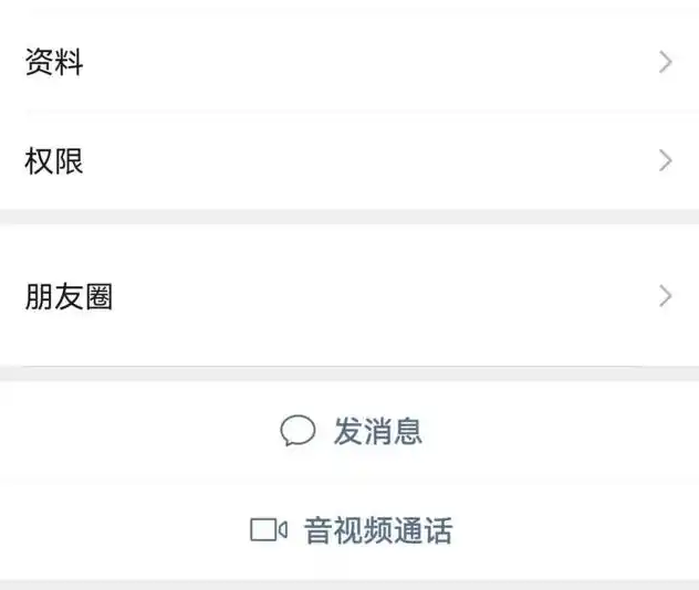 而在新版本中,这俩选项重新命名,变更为“资料”和“权限”;与此同时,原本位于“发消息”上方的“更多信息”选项消失不见。