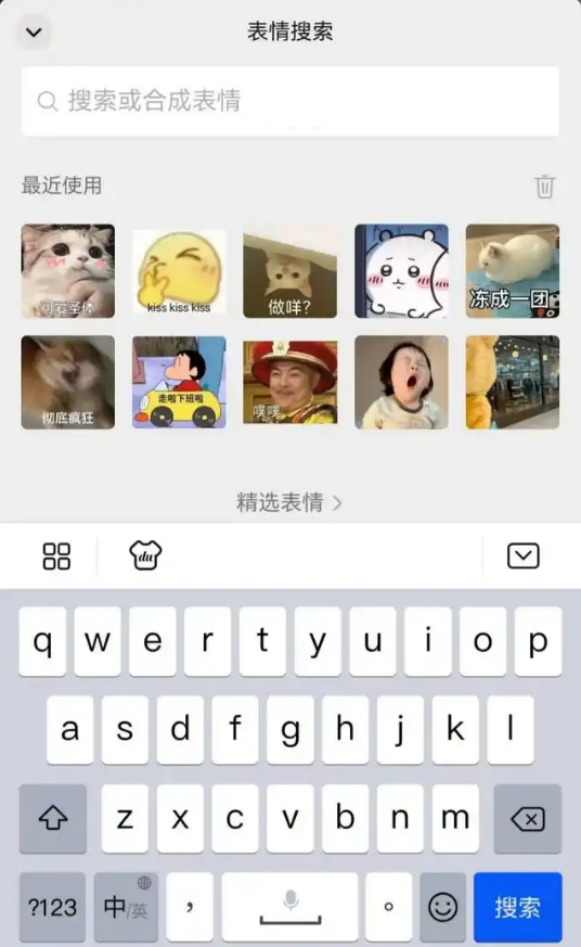 点击表情最左侧的“搜索”图标,搜索框下方会显示最近使用的表情。