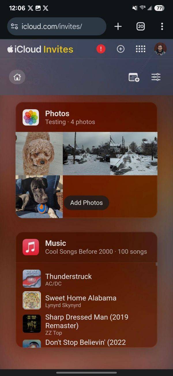 如果活动启用了 Apple Music 播放列表,用户也可以查看。除了接受邀请外,拥有 iCloud + 订阅的用户还可以通过网页版创建邀请。创建流程与 iOS 应用略有不同,但所有功能都支持。