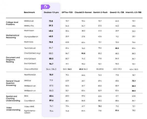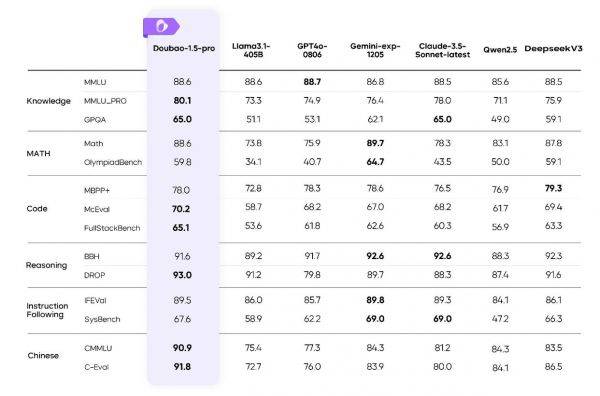 在多项基准测试里,豆包1.5 Pro的得分达到了全球领先水平