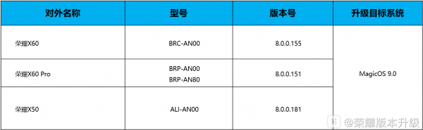 荣耀X60 Pro、X50 等三款机型开启 MagicOS 9.0 内测招募